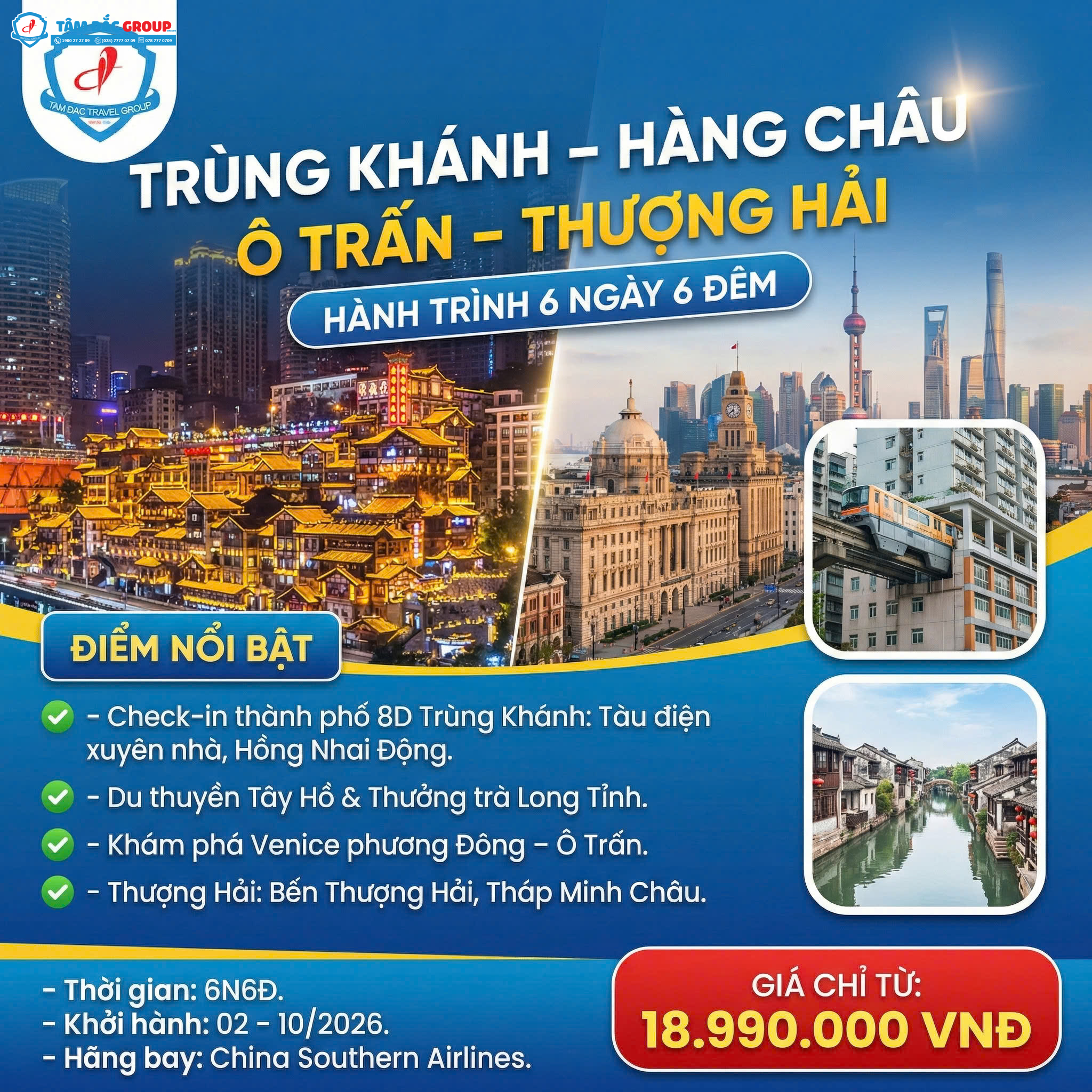 TOP CHINA TRÙNG KHÁNH - HÀNG CHÂU -Ô TRẤN - THƯỢNG HẢI ( 6 NGÀY 6 ĐÊM )