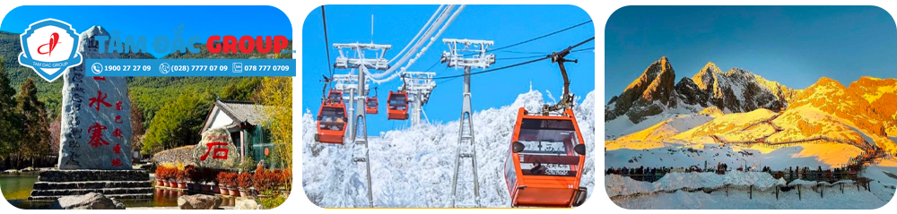 - Núi Tuyết Ngọc Long cách trung tâm phố cổ Lệ Giang về phía Bắc, quanh năm tuyết phủ trắng bao phủ một khu vực rộng lớn giống như con rồng lớn nên được gọi là “Ngọc Long”. Nơi đây còn được so sánh với “Thụy Sĩ Á Đông” như rặng Pyrenes (ngọn núi nổi tiếng tại biên giới Pháp và Thụy Sỹ). Đoàn đi cáp treo lớn lên núi với độ cao 4600m và chụp ảnh lưu niệm.