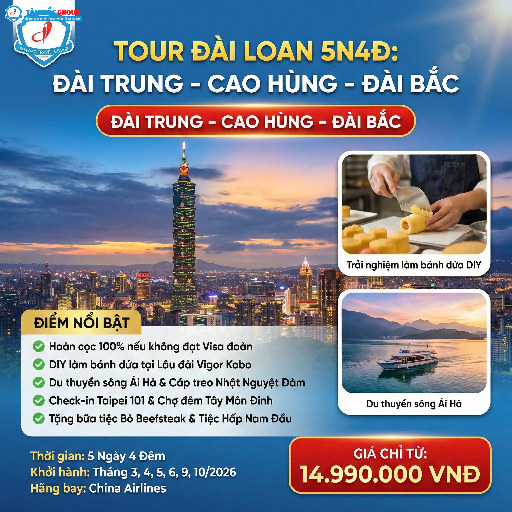 TOUR TAIWAN - ĐÀI TRUNG - CAO HÙNG - ĐÀI BẮC ( 5 NGÀY 4 ĐÊM )